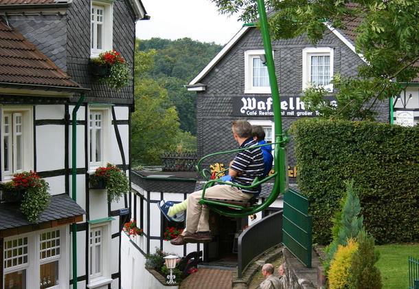 Mit der Seilbahn fahren Sie fast direkt am Burger Waffelhaus vorbei, einen Besuch dort sollten Sie nicht versäumen.