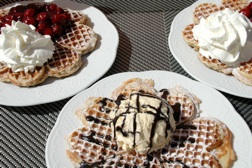 Frische, heiße Waffeln in allen Variationen, werden bei uns noch nach altem Familien Rezept für Sie gebacken.